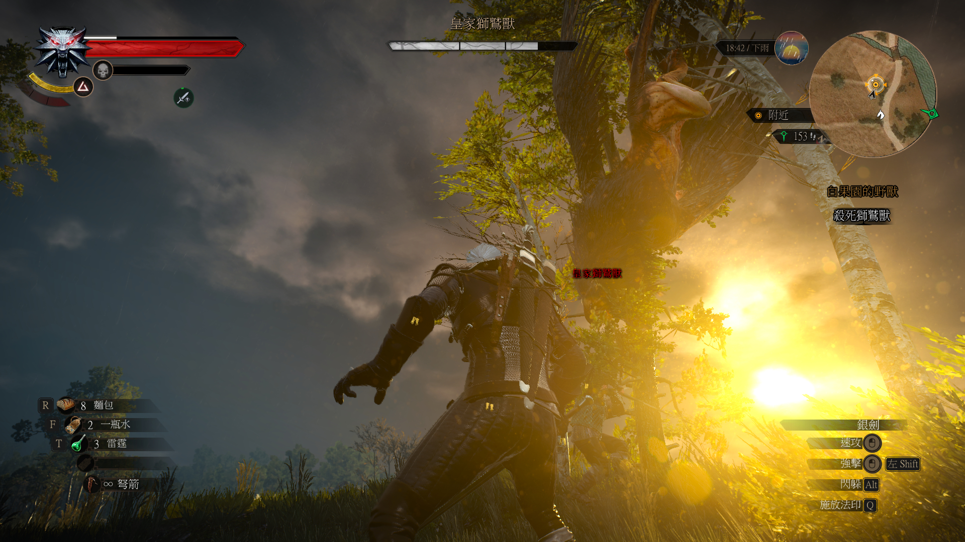 新人才玩到打狮鹫那里,结果它飞着飞着就卡树上了
