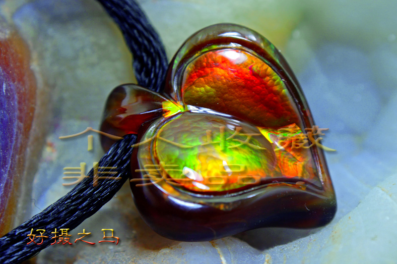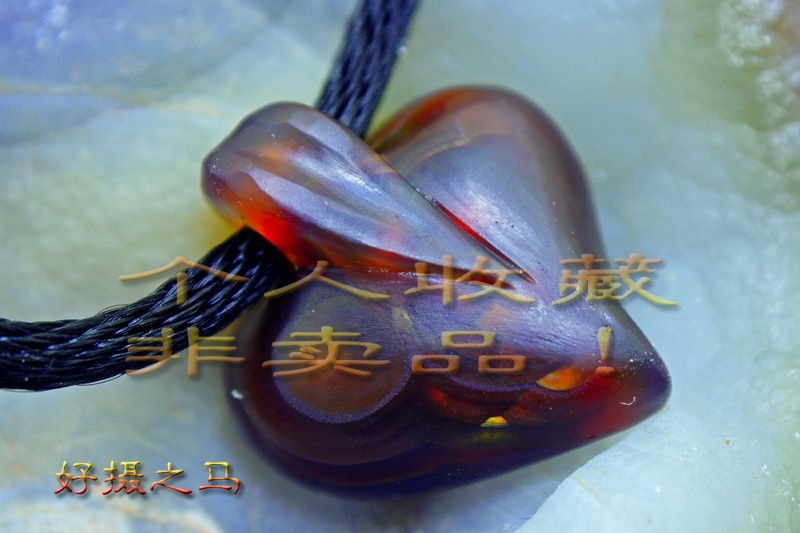 第三颗为火彩丰富但故意切割成‘黑桃心’状的火玛瑙挂坠,希望这个分享能给国内尝试切割火玛瑙的朋友提供一些简单的‘概念’。