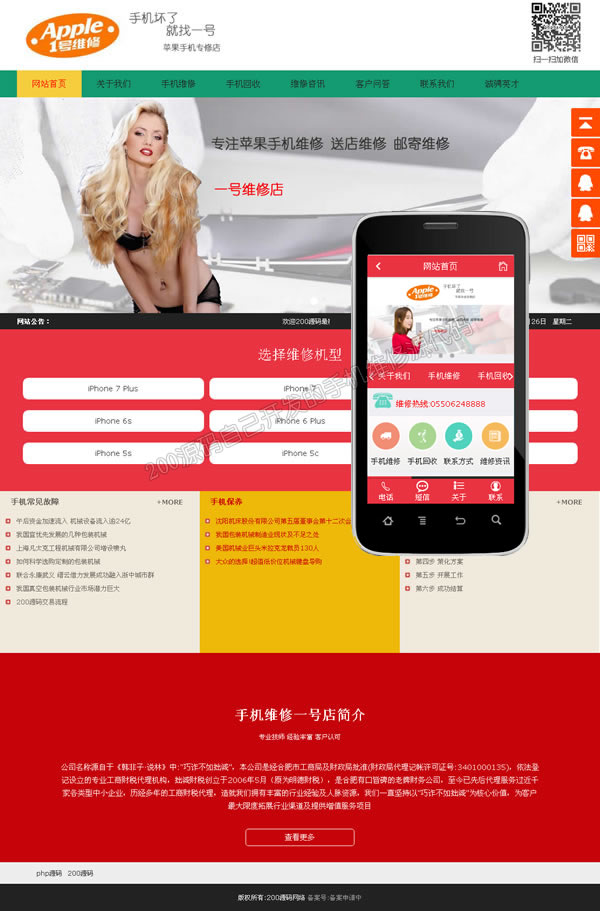 php手机维修网站源码宽屏模板+手机站