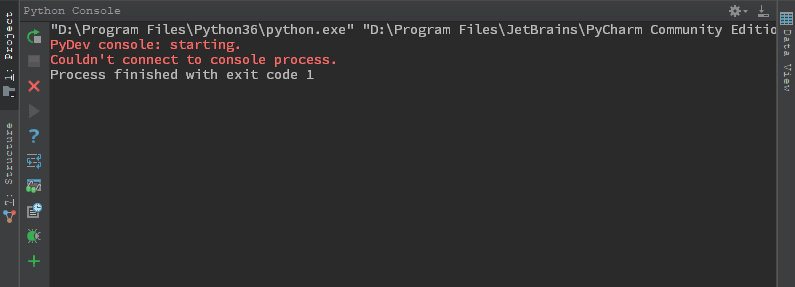 今天打开Pycharm,发现Python Console无法正常使用,报错: Couldn't connect to console process。各位大神,这是什么情况啊,折腾一天了,还没找到解决问题的办法,求大神支招啊!在此跪谢了~~~