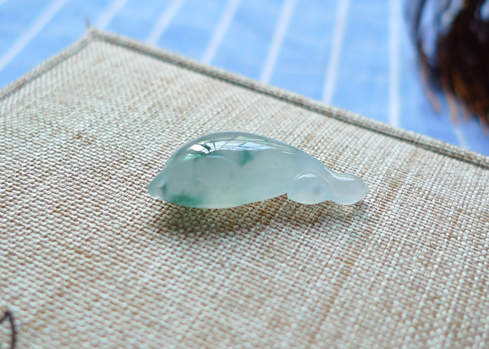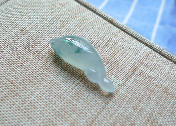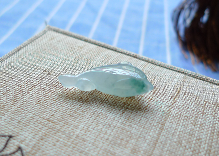 【名称】-缅甸天然翡翠A货冰润飘花海豚(3880)【尺寸】-26.5*11.7*7.6mm【重量】-2.83g【价格】-399元【简介】- 无纹裂,种水佳,玉质冰润,飘花。