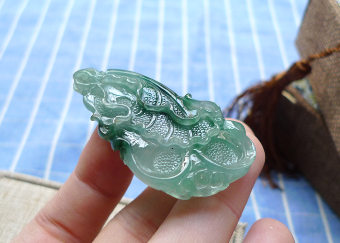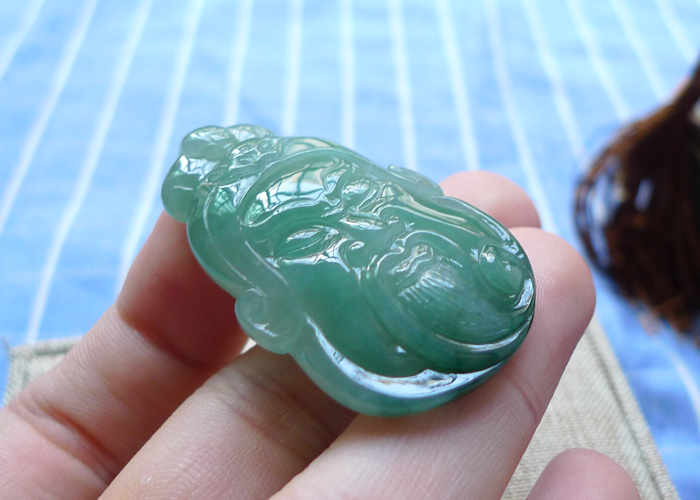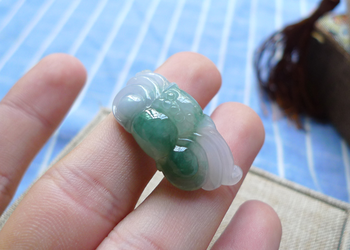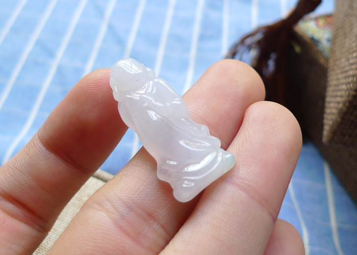 【名称】-缅甸天然翡翠A货细腻佛公(3876)【尺寸】-26.8*9.8*6mm【重量】-4.95g【价格】-168元【简介】- 无纹裂,种水好,玉质细腻。