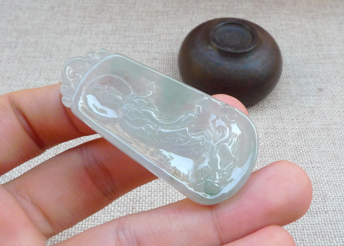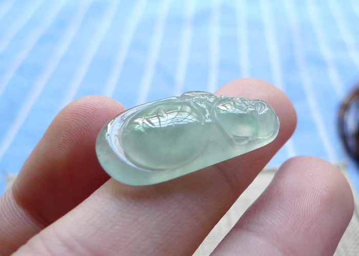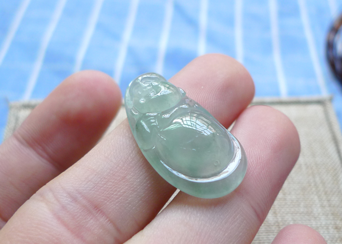 【名称】-缅甸天然翡翠A货晴水佛公(8014)【尺寸】-28.5*14.8*5.6mm【重量】-4.08g【价格】-338元【简介】- 无裂,种水佳,玉质冰透 ,有牛毛细纹,可忽略