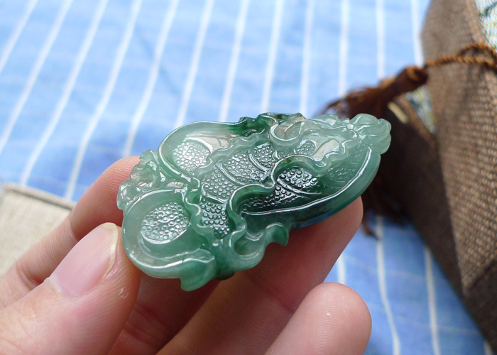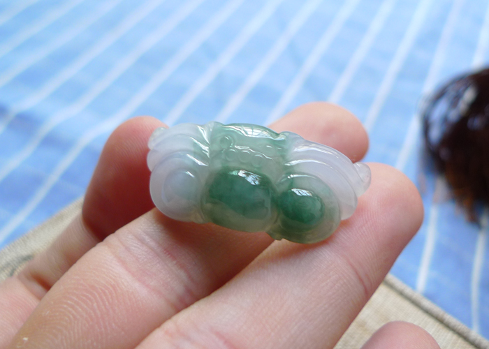 【名称】-缅甸天然翡翠A货飘花福在眼前(3024)【尺寸】-34.8*14.8*6.8mm【重量】-5.67g【价格】-366元【简介】- 无纹裂,种水佳,玉质水润,飘花。