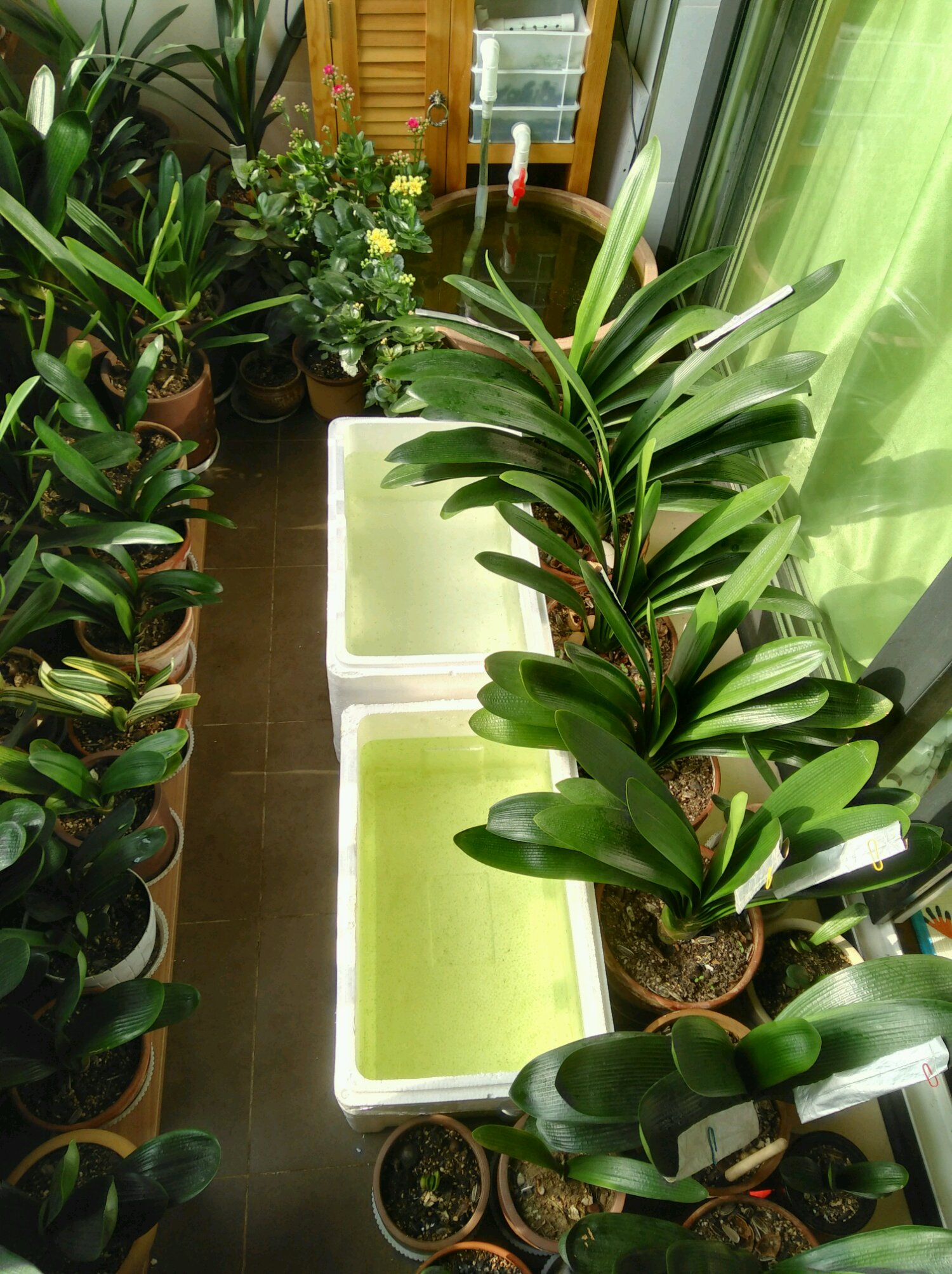 两个泡沫箱,一个玻璃缸,一个水缸,全是鱼苗,希望别团灭