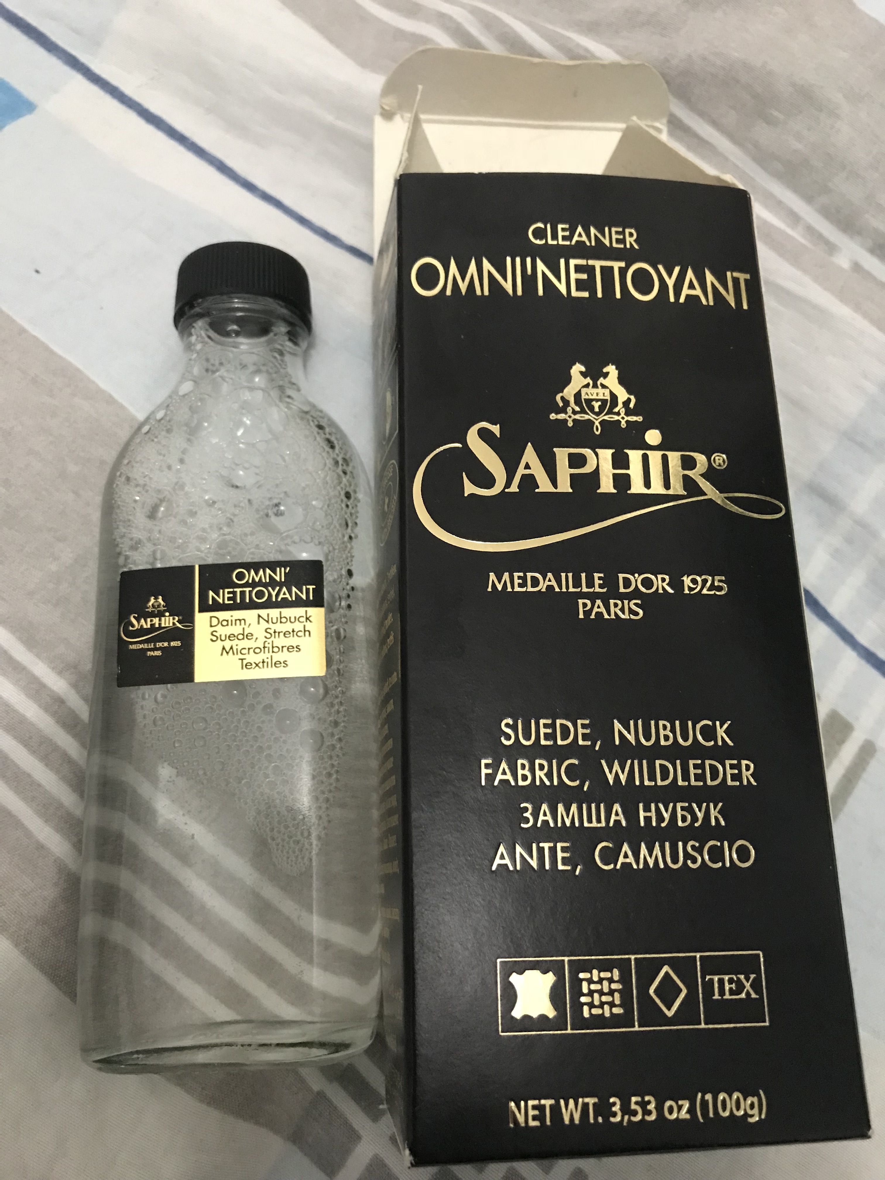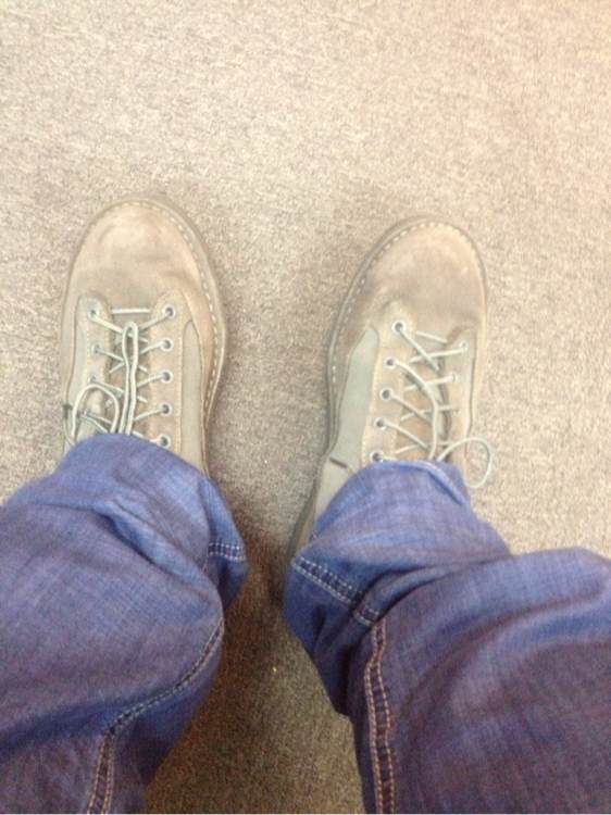我买的是 Danner LIGHT II 33000,磨砂皮的鞋面,在网上买了Saphir沙菲雅这个牌子(不便宜)专门清洗绒面皮和磨砂皮的,我就怕有什么问题所以在鞋舌上试用了一下,果然中招了,洗没颜色了,吧友们清洗要注意了,下面上图买这个牌子清洗的注意了!!Danner logo那一片就是洗没颜色了,深棕色变成浅色了!