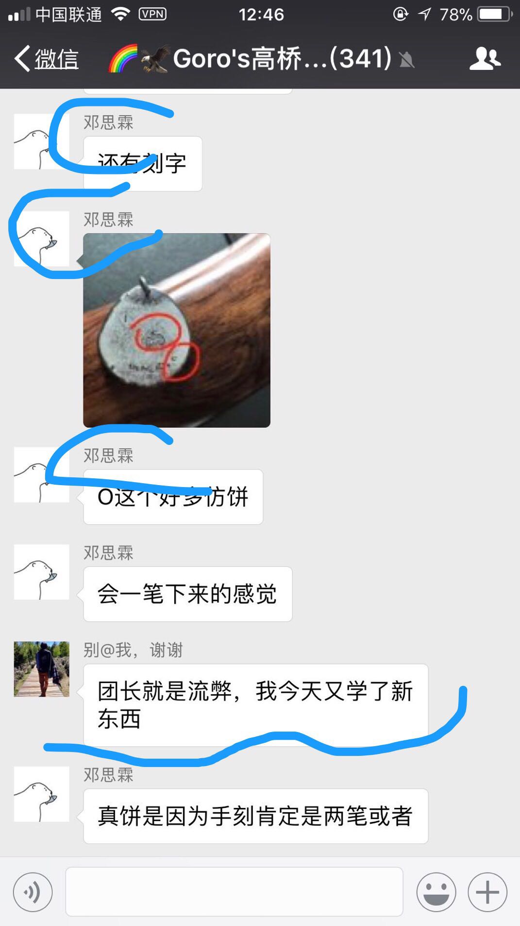 最后一个问题,这个问题有点炸了,我也没想通,这个还真是厉害,你有个群?其中还设了个鉴定团长的职务,为了方便大家放心购买您大郎先生的物品,这个好,但没想你这群自己爆出,你的这位帮大家鉴定团长是你自己的供货商,**,这是真的吗,你这服务态度是业内大哥,从进货,销售,鉴定都你一个人啊,大朗你的这一贵群这样的一条龙服务,利用鉴定团长一职,你和其供货商以职务之便兜售假货甚至串通验证渠道团伙作案?你的良心被狗吃了吗?也请正面回答!还有些对话截图,大郎你是这行中的霸主级代表!