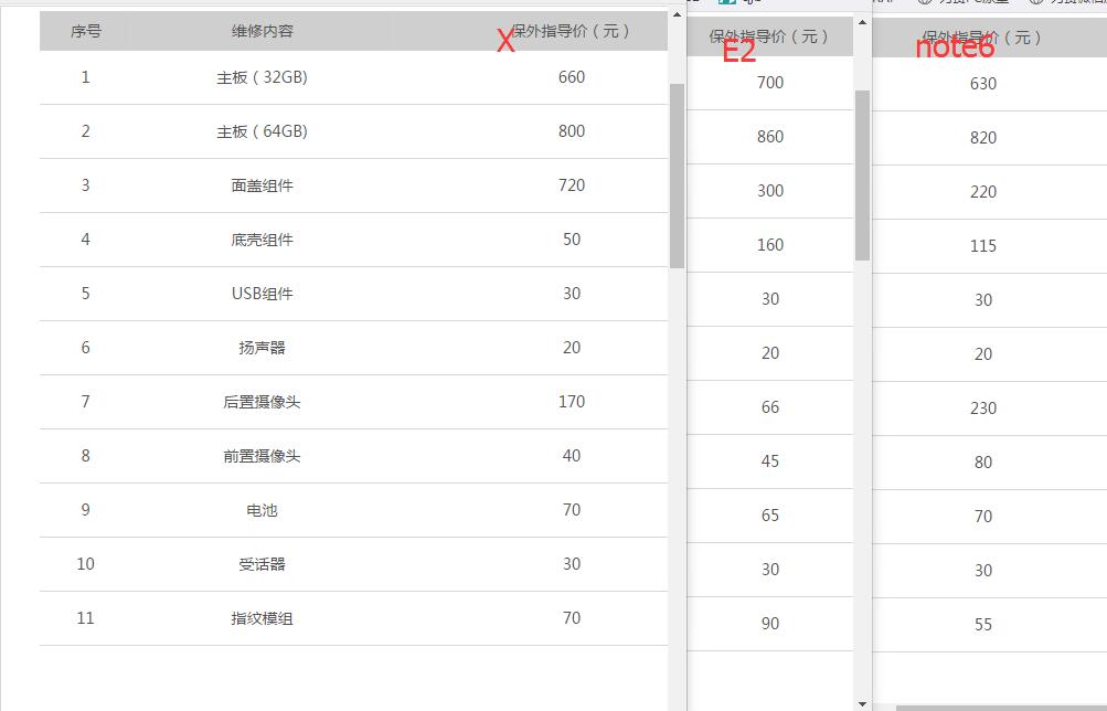 现在简单粗暴从官网配件价格来对比魅蓝X,E2,note6.