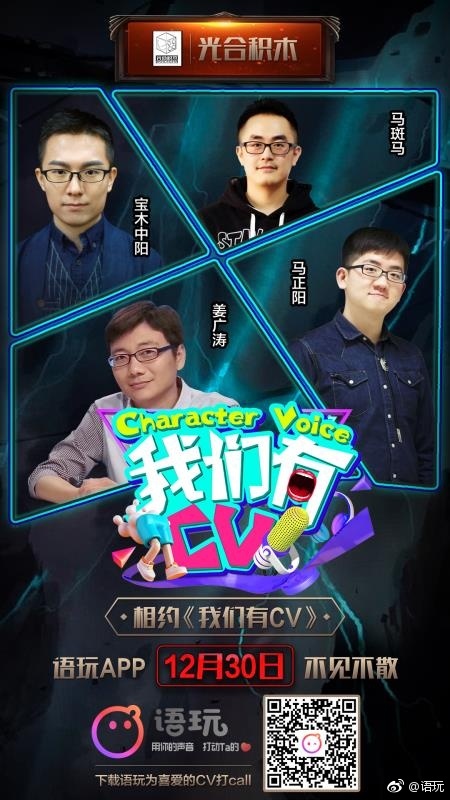 最近在微博上开始炒起来的CV选秀综艺节目,明儿个就要开赛啦!嘉宾有马斑马 苏榭和C小调~厉害厉害~