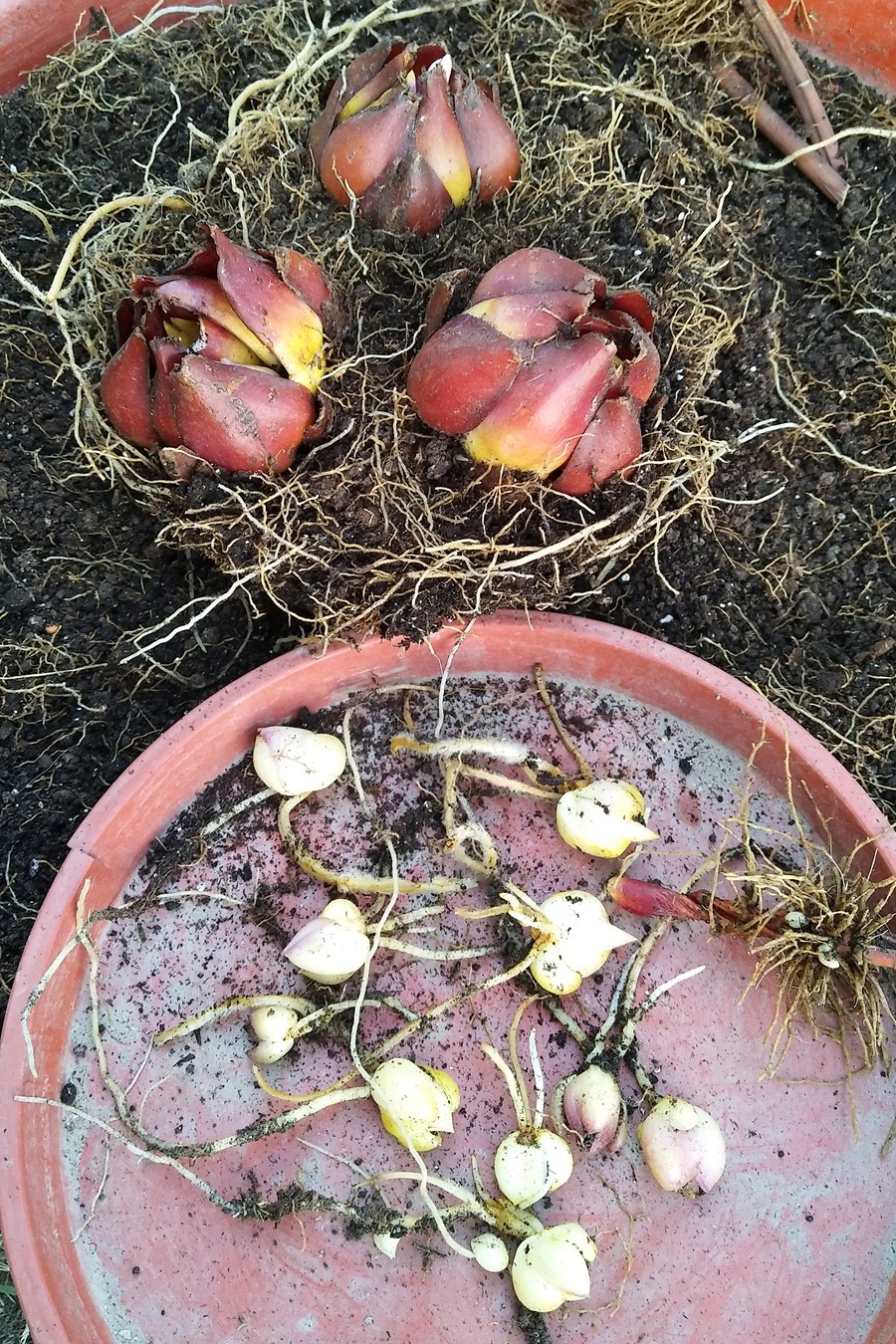 小球根系都长到大球鳞片里面了,费好大劲才分开