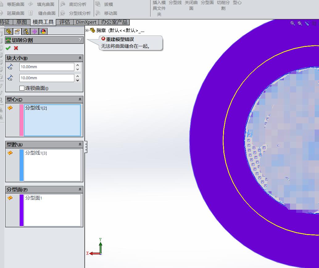 做出来一个徽章实体,想做一个冲压模具。用SW里的模具模块死都生成不了。