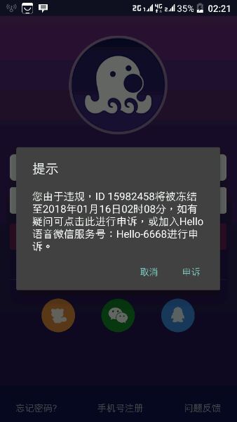 我想知道我的号什么也没做我玩了这软件一个礼拜冲了块一万今天刚解封为什么又给我封了??至前是头像违规今天又冻结15天求解释账号: 15982458 谢谢