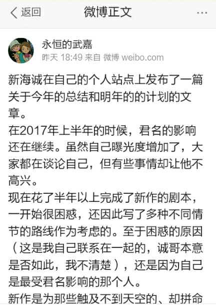新海诚在个人网站上发布了