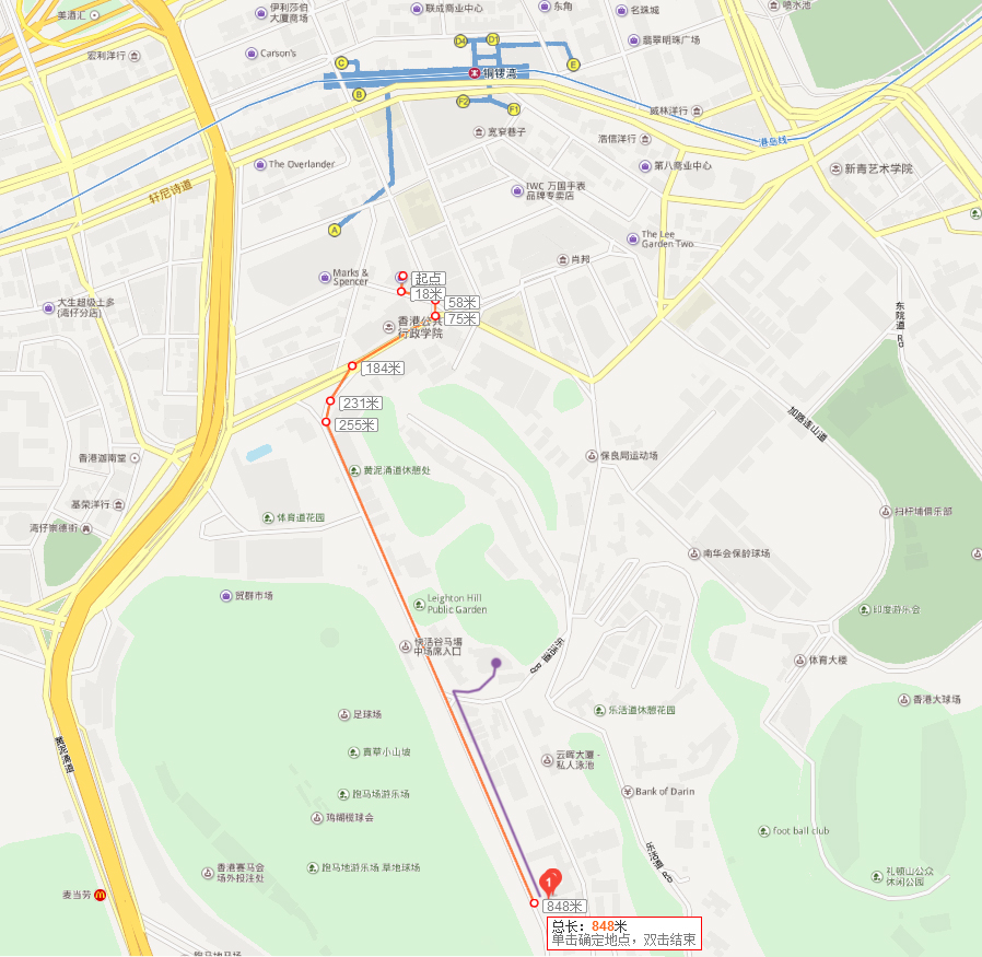 左边就是跑马地了,任姐家(逸庐)就在右前方大概还有200米就快到任姐楼下了。