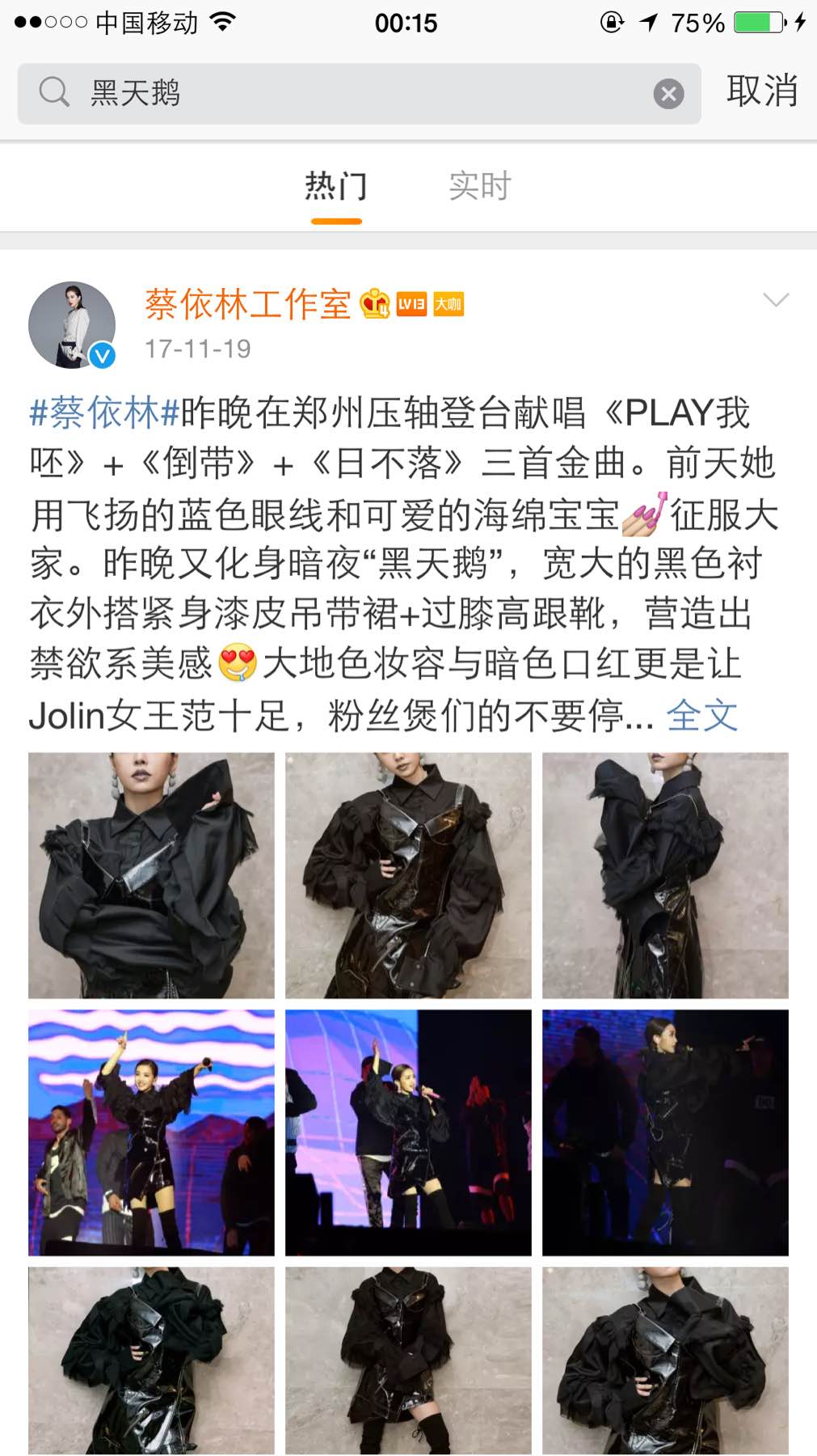 蔡依林的微博发过我的老天鹅啊!好像还不是一次,金马奖之后好像发过,说自己没发挥好