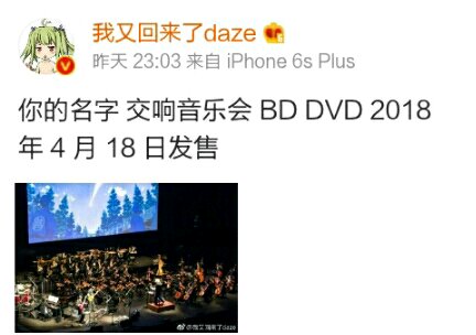 你的名字 。交响音乐会 BD DVD 2018 年 4 月 18 日发售