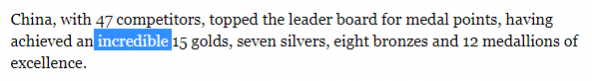 英媒称中国队的成绩“不可思议”