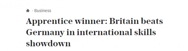 “不可思议”(incredible)——这是一家英国媒体报道中国在此次世界技能大赛中取得优异成绩时的用词。