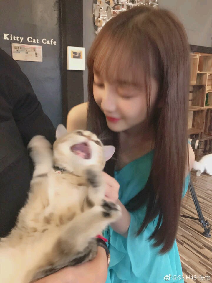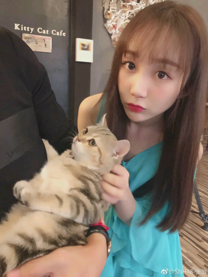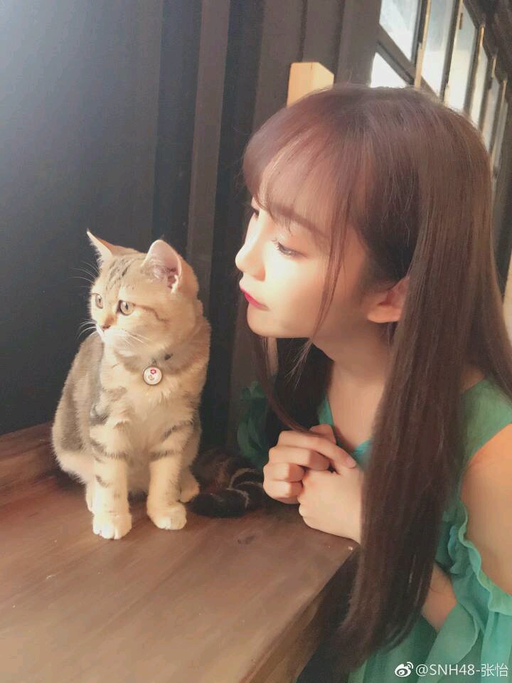 猫子跟张怡笑的神同步