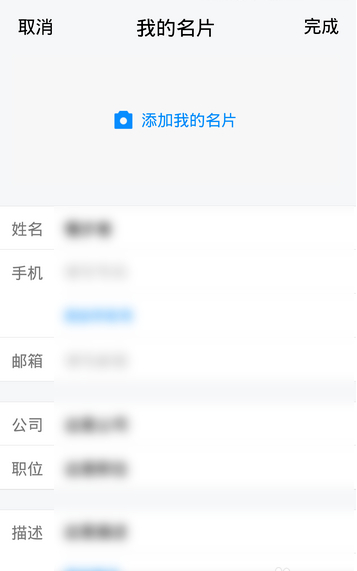 接着,在“我的名片”中填写相应的个人信息。