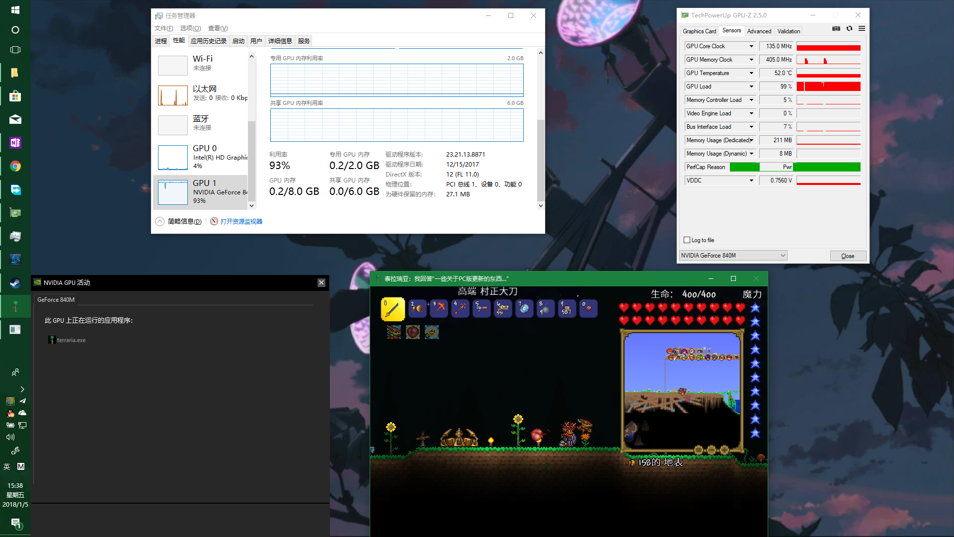 这是独显玩泰拉瑞亚很卡人物走路攻击都很慢!
