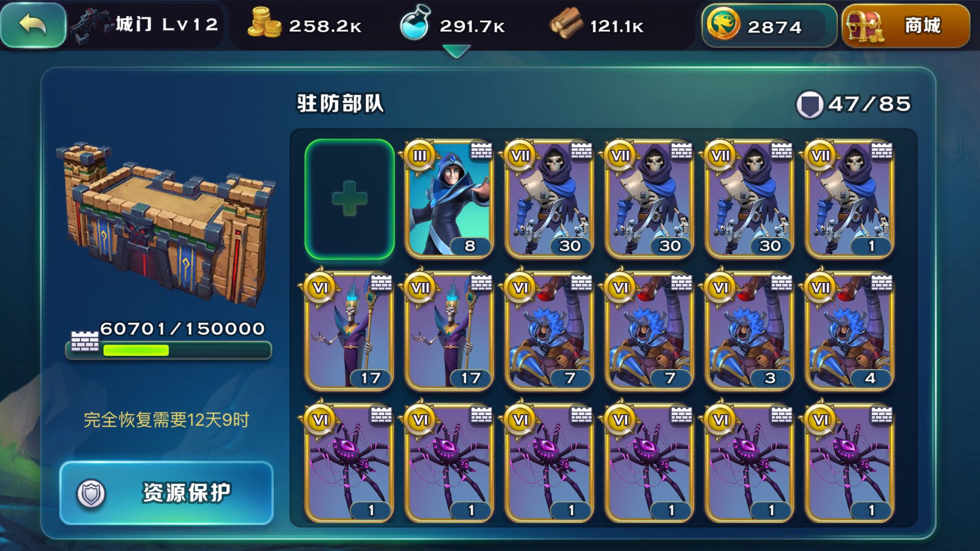 我想问下,有多少个是满城墙15级骷颅的。我用了70个体力才招了20多队银的。现在还被削一刀…金的那里组都是我自己用资源招的