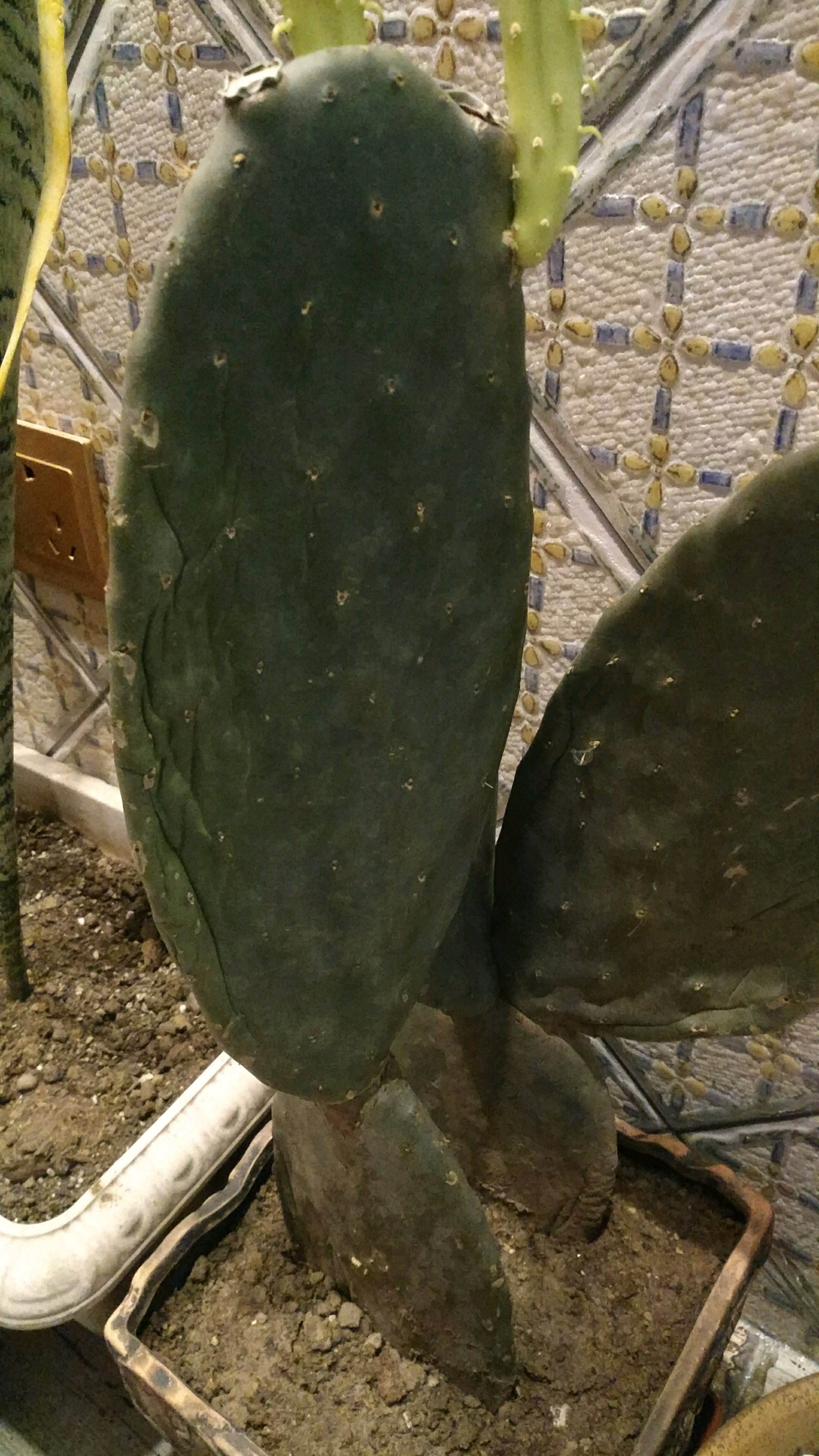 放到有阳光得位置,看看嫩得怎么长,胭脂掌还能长大,其他掌长不大了