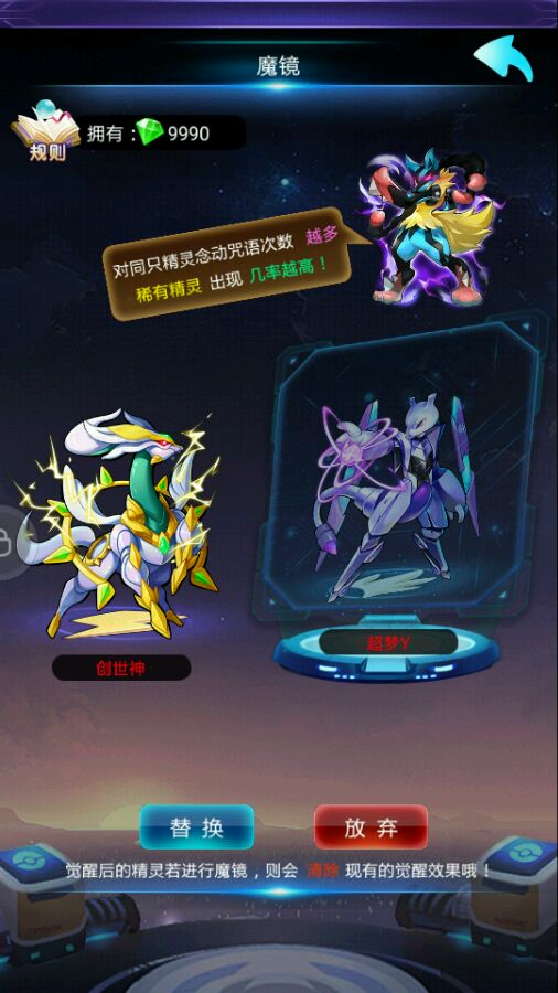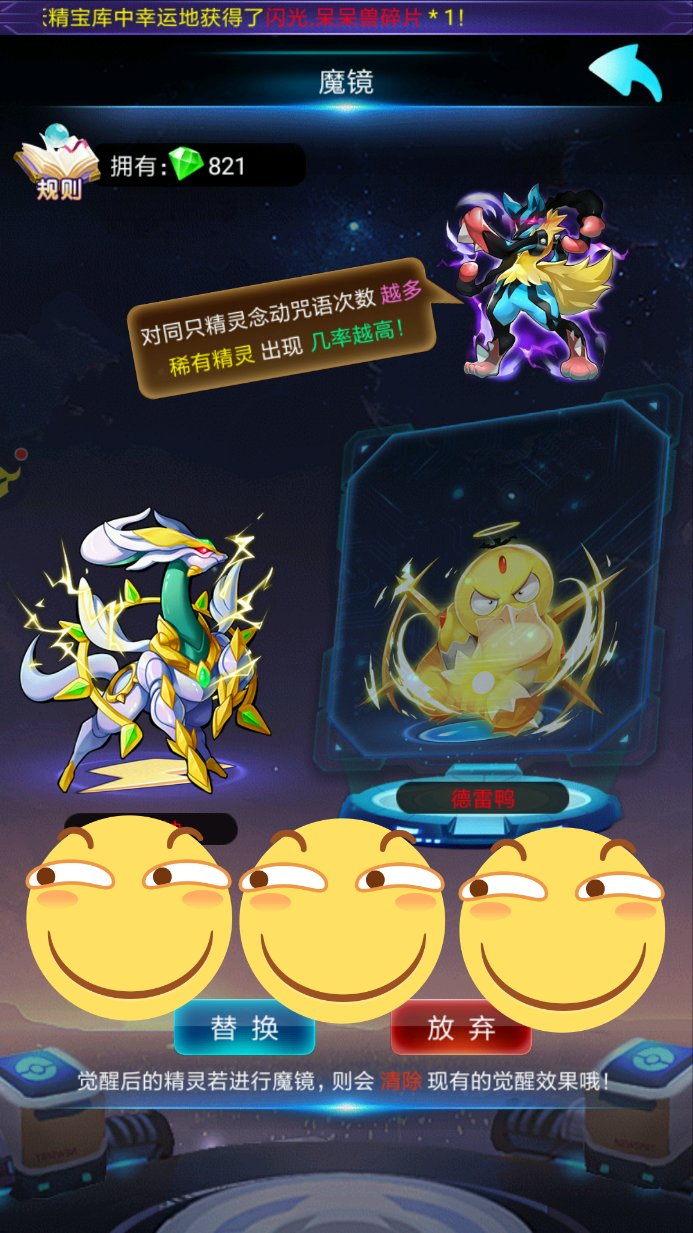 别啊,魔镜就是坑,除了有贼小贼小的几率有mega。就算运气最好也就黑白龙,创世神,鹿和(另一个想不起来了,只知道它腿很细,黑色的)。想变强直接用18000钻买一次一二转材料。去做魔典。魔典得的钻搞鲨鱼或其它的宠物推图