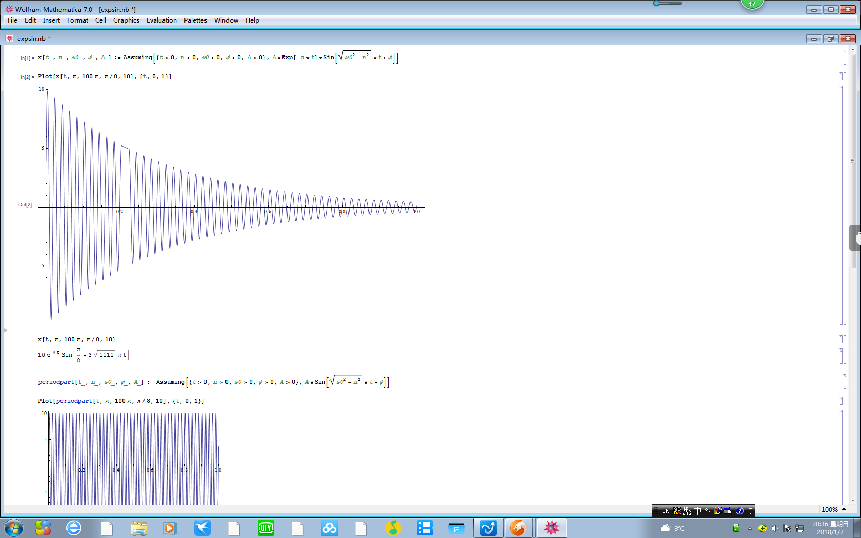 A*Exp[-n*t]*Sin[Sqrt[\[Omega]0^2 - n^2]*t + \[Phi]]]