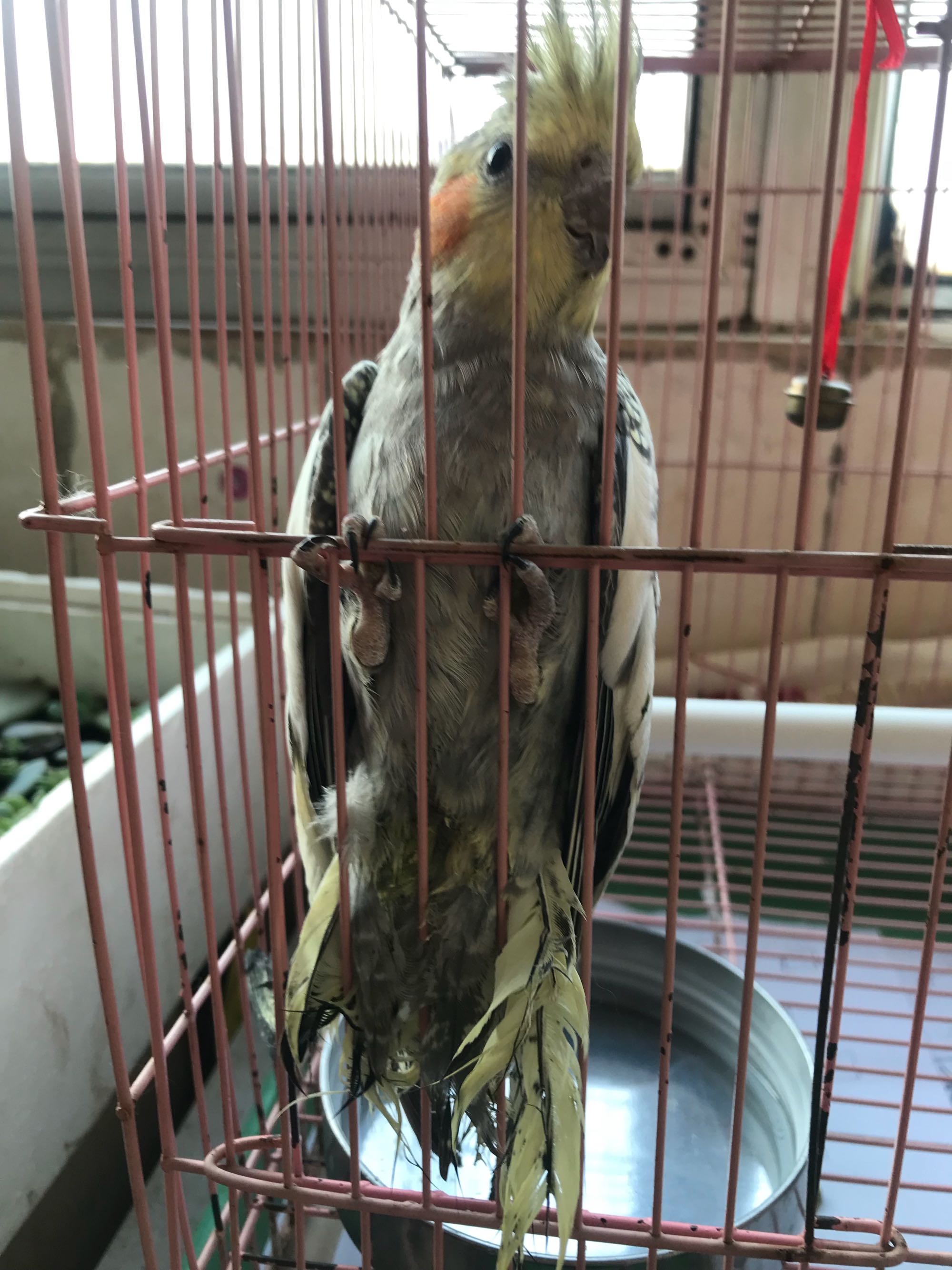 这是上周六鸟市买的,当时看它挺可拎的尾羽都没了,老板说不到2个月,怎么看都觉的不像,翅膀内侧有黄色斑点,有3根毛是长方条的,老板说因该是公的,我想买一对没敢买,我觉的老板也不靠普,有大神帮我看看吗?不胜感谢,第一次养谢谢啦