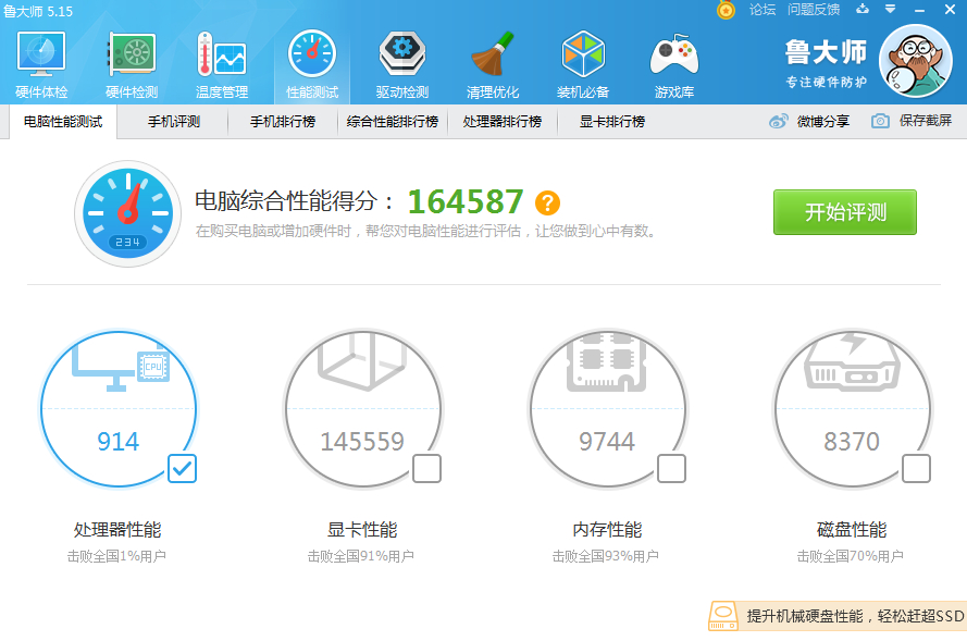 接着是鲁大师的跑分图: