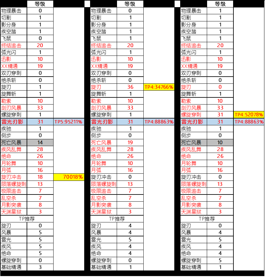 加点说明:单刷向推荐第二行,前提是用得好旋刃。否则就参考第一行吧