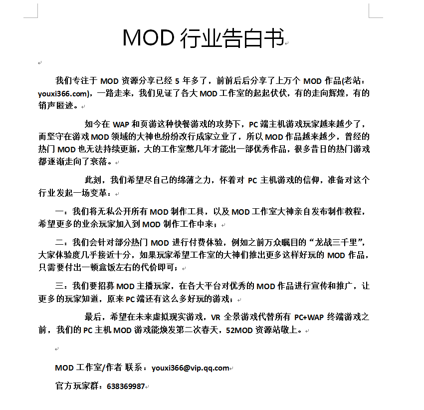前言:我们专注于MOD资源分享已经5年多了,前前后后分享了上万个MOD作品(老站:youxi366.com),一路走来,我们见证了各大MOD工作室的起起伏伏,有的走向辉煌,有的销声匿迹。
