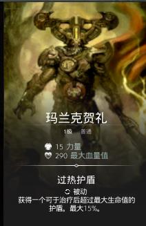 4黄4绿的卡,被动可以在满血的状态下 多给自身最大血量15%的护盾,至于出装理由,有血有力量的属性不可多得。