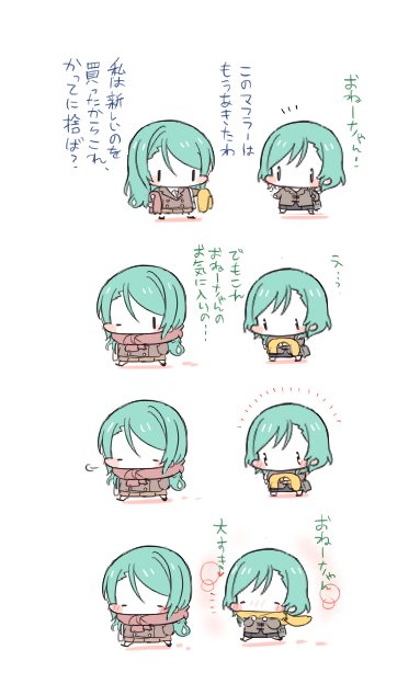 姐姐看妹妹打喷嚏回去拿了一条新围巾之后把已经围暖的那条给妹妹用,可惜不是官方发的~