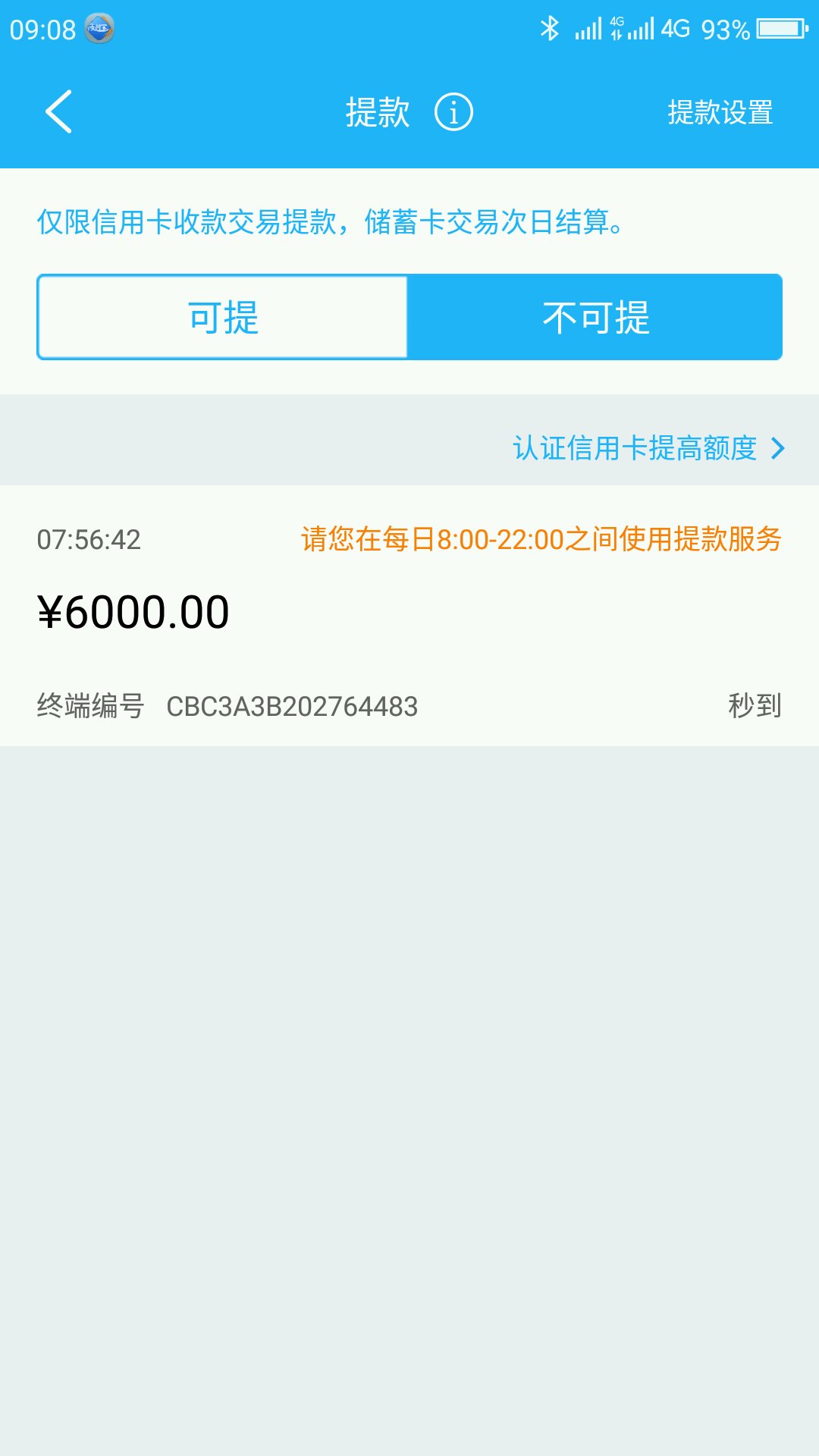 早上刷的信用卡,不可提款