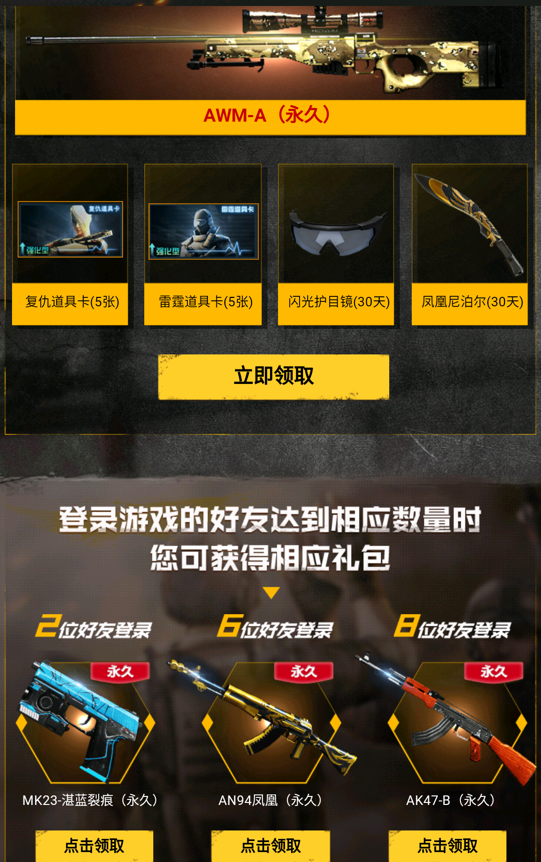 毒奶粉玩腻了?来玩玩大三亿吧,永久防弹衣、防弹头盔、M4A1-S、AK47-B、AWM-A、新09式狙击枪免费送,点击链接即可领取