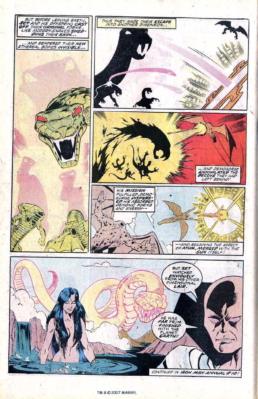 Set和Ibis自从地球黎明时便已是仇敌,传说冥河蛇神与Ibis在外部的黑暗中进行了长达十万年的战斗。 (Ibis是Gaea和Demiurge所生的次子,Atum的兄弟;后来Atum成为了埃及的太阳神Ammon Ra,Ibis则成为埃及的月神Thoth。)