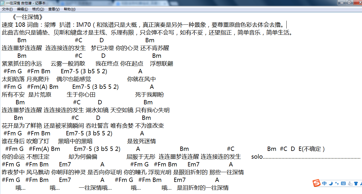 一往深情 吉他谱 (简易,适合新手)