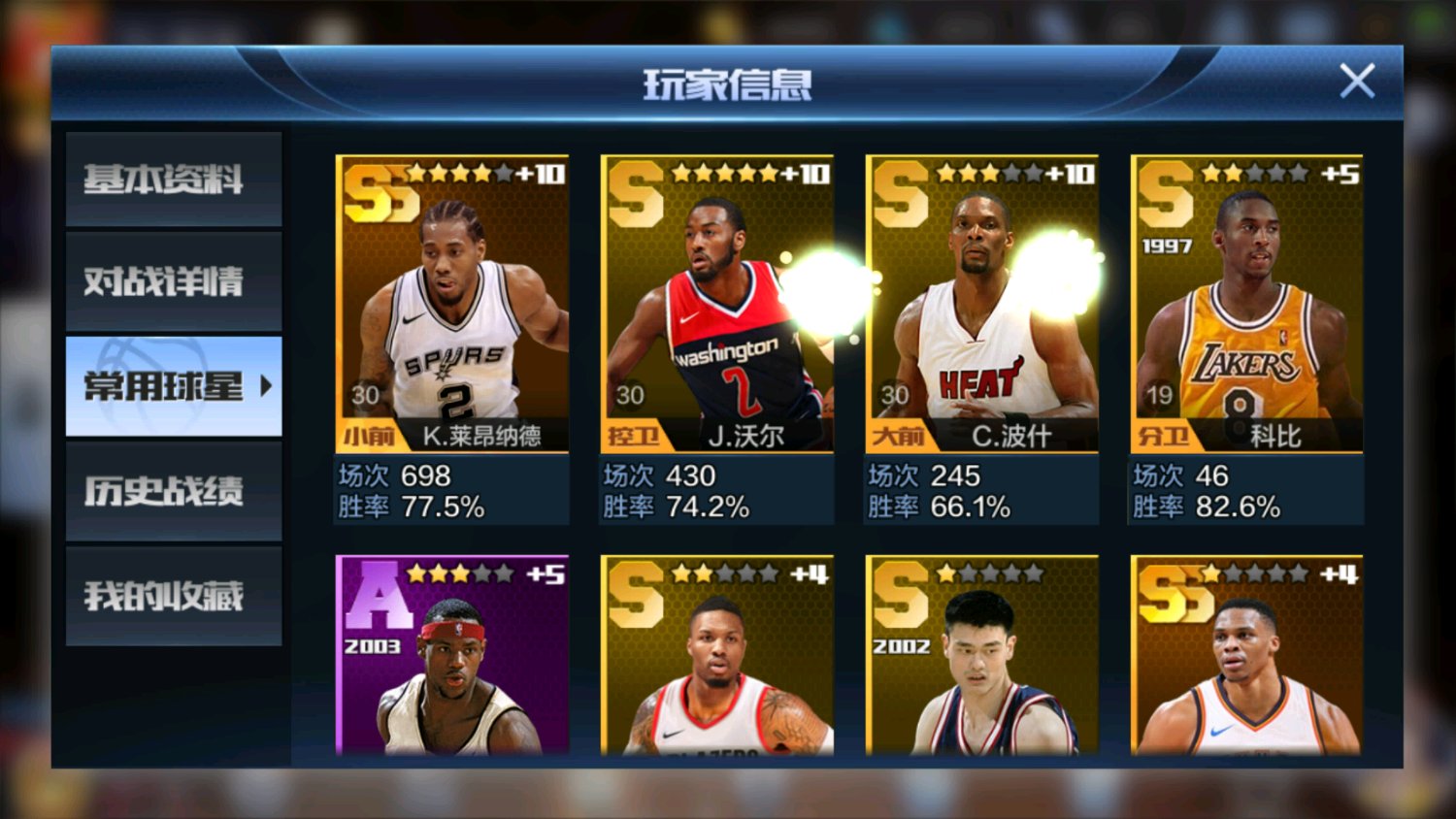 回复 hch901018 :莱昂4加8,正在堆金币冲10,还在纠结要不要五星。詹姆斯80碎片也快出来了,不过我特训只有90,培养要特别久。格林我担心的是空位三分两分命中率,不是那种被人放空的就行。