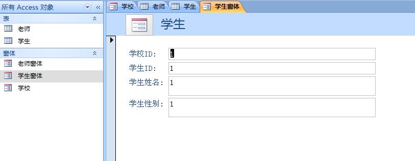 “老师窗体”两个窗体。