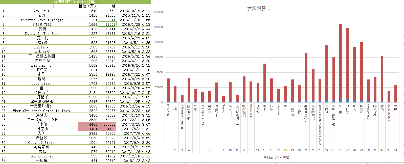 #陈一发儿#开坑2017年萝菽菽视频数据和网易云记录