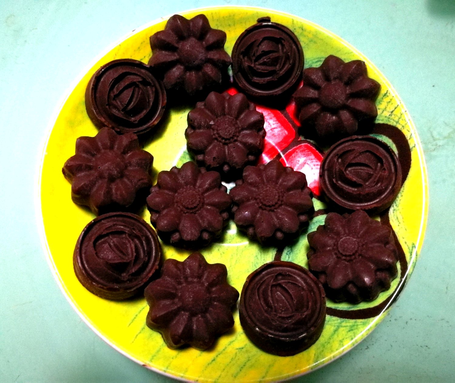 第一次学着做巧克力,纯黑,味道微苦,还行,60分吧