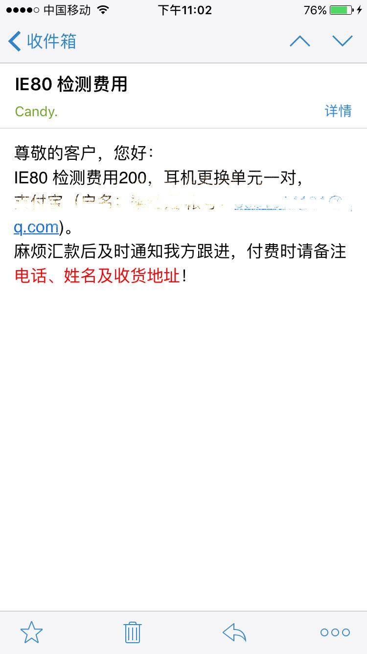 德亚维修费200大元,更换两个单元。今天付了维修费,过两天发