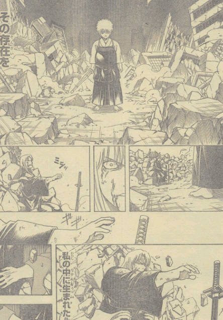 松阳老师上线→银恍惚→虚上线→准备一刀ko银→某咆哮帝大吼不是老师是亡灵→集体高呼我们的羁绊 我们要活着→银带着大家的寄托ko虚→虚看见人性闪光点笑着身形俱灭→银说虽然我又一次砍了老师但我让老师明白了他存在的意义也明白了我活着的意义→交代一下政权更迭→完结撒花