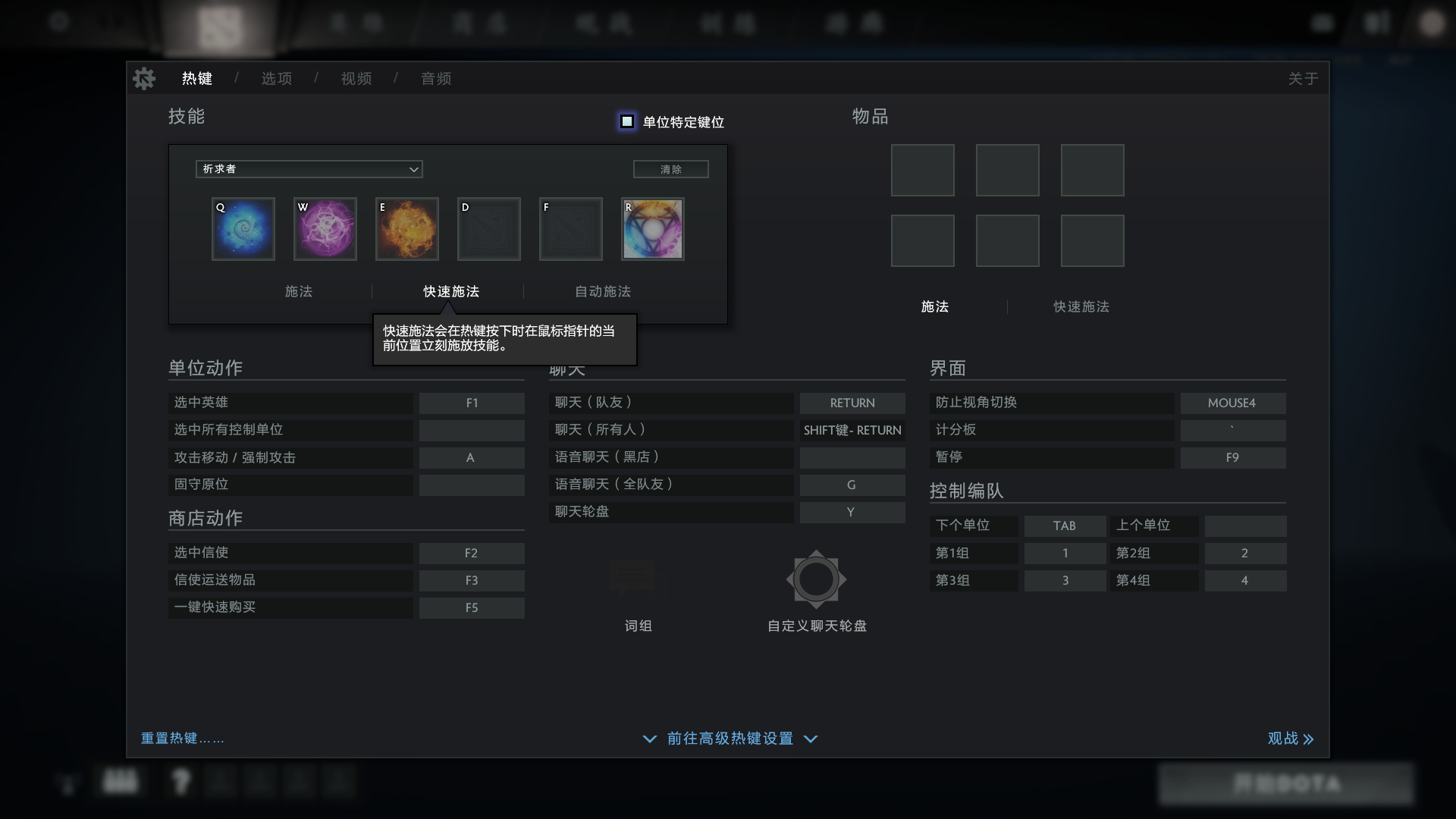 5.我喜欢用快捷施法,所以物品栏也都是调的快捷施法