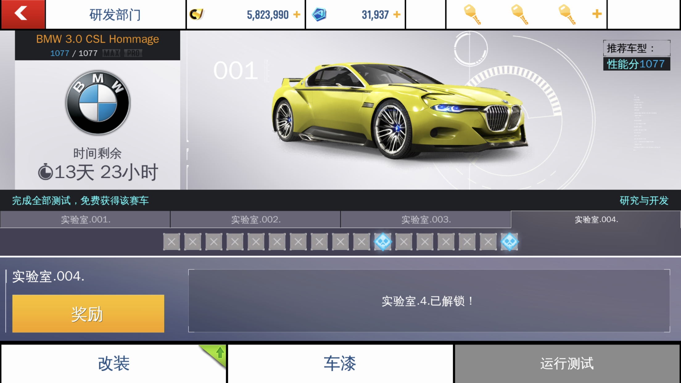 特改max部分加速4/5级以及极速3/5级需要代币升级,研发会给4个免费升级但第1个用不上,所以去技巧赛提一个A级免费就能免费完成max部分的改装。pro部分完全无难度。