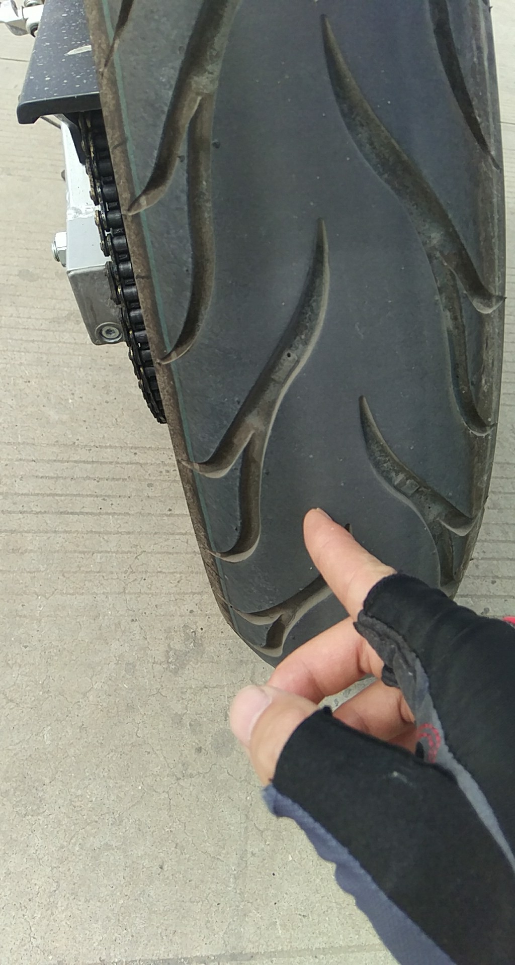 各位同学帮我看下差多少满胎。百度没查到,差一公分到中间。去练内倾,结果没压下下去反倒把外倾练会了。全是外倾压的。