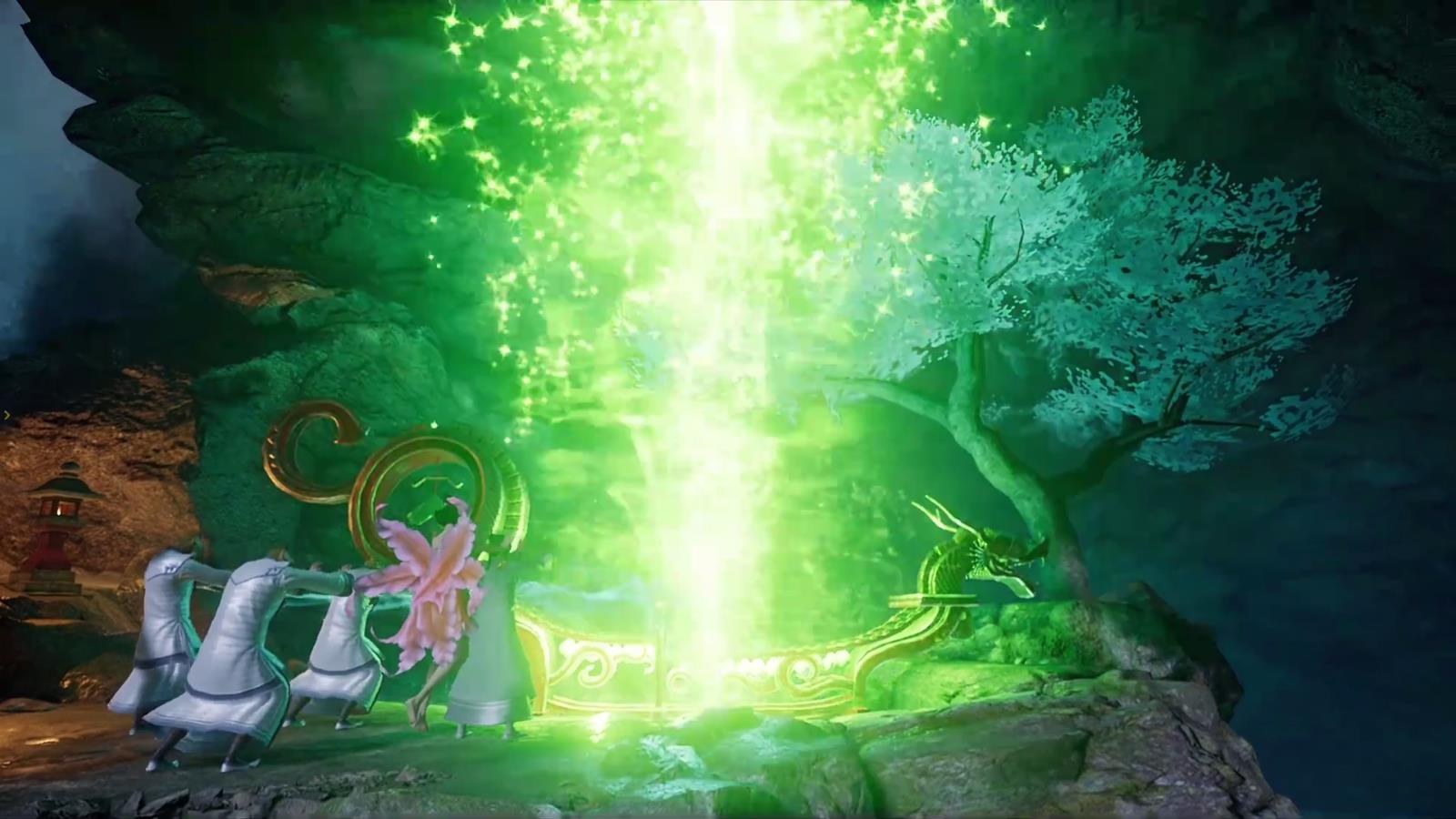 此外还有剧情表现很简略的其他几段祈舞:引导南北斗结婚戒指的力量驱散夸父身上的混沌雾霾,与银川合力净化滨洛喝的脏水,还有日临大典上同样是配合南北斗戒指驱雾霾重新连接人界和百鸟国并成功联系到朝阳。这里我才后知后觉巫舞在这作世界观设定里是实实在在可以与上天沟通的一种方式(不过混沌干扰了就通信不良了)。