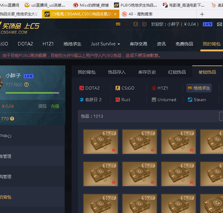 这个是之前群友说的,12号被锁箱子截图是第一张,大家注意看第二张是15号的,突然就解封了67个箱子到他背包里,不能取回,但是可以丢求购,他卖了提现了。